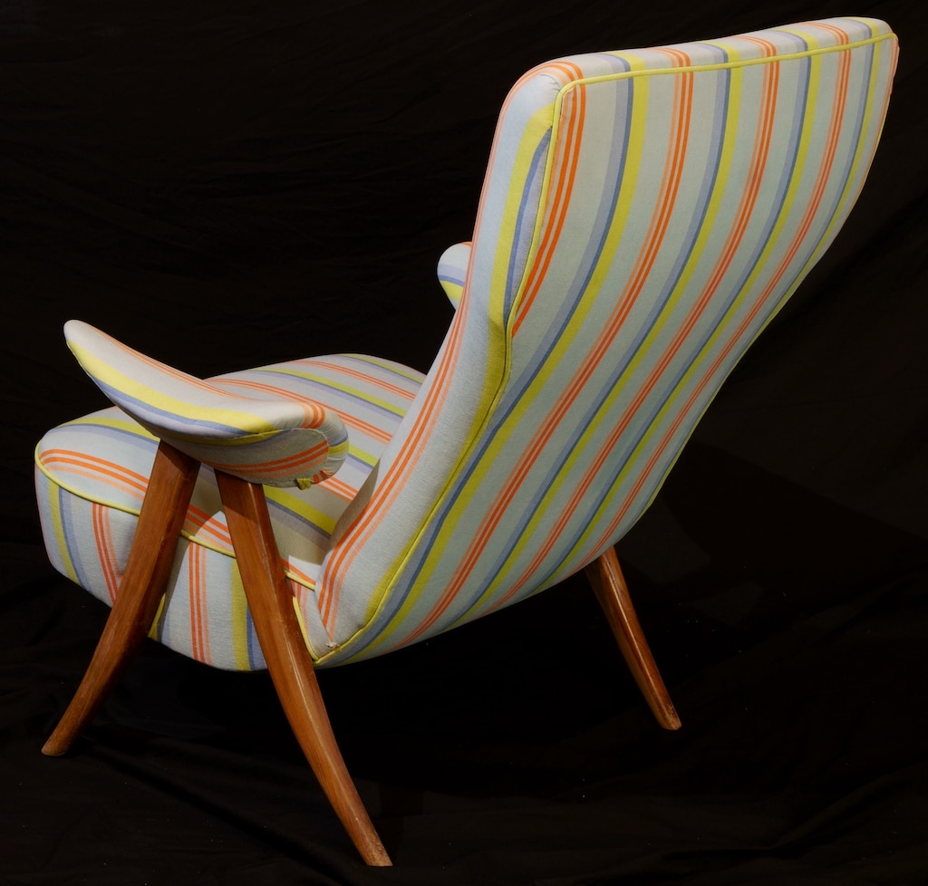 This particular lounge armchair is a great Dutch design designed by Theo Ruth for Artifort. Model 105. The lounge armchair has the distinctive ‘hairpin’ legs with optically floating armrests. The armchair has not been restored, and is still upholstered in the original Artifort fabric.