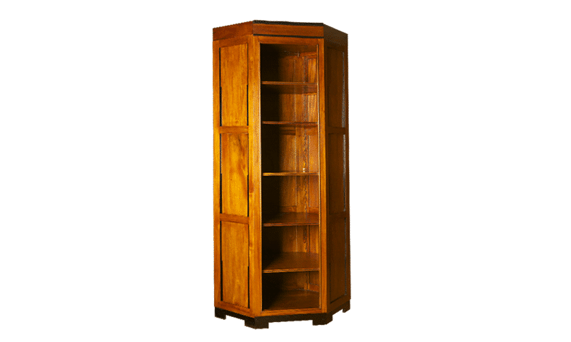 This solid mahogany case turns corners in combination with matching cases. But of course you can also use it as a stand-alone corner case.
