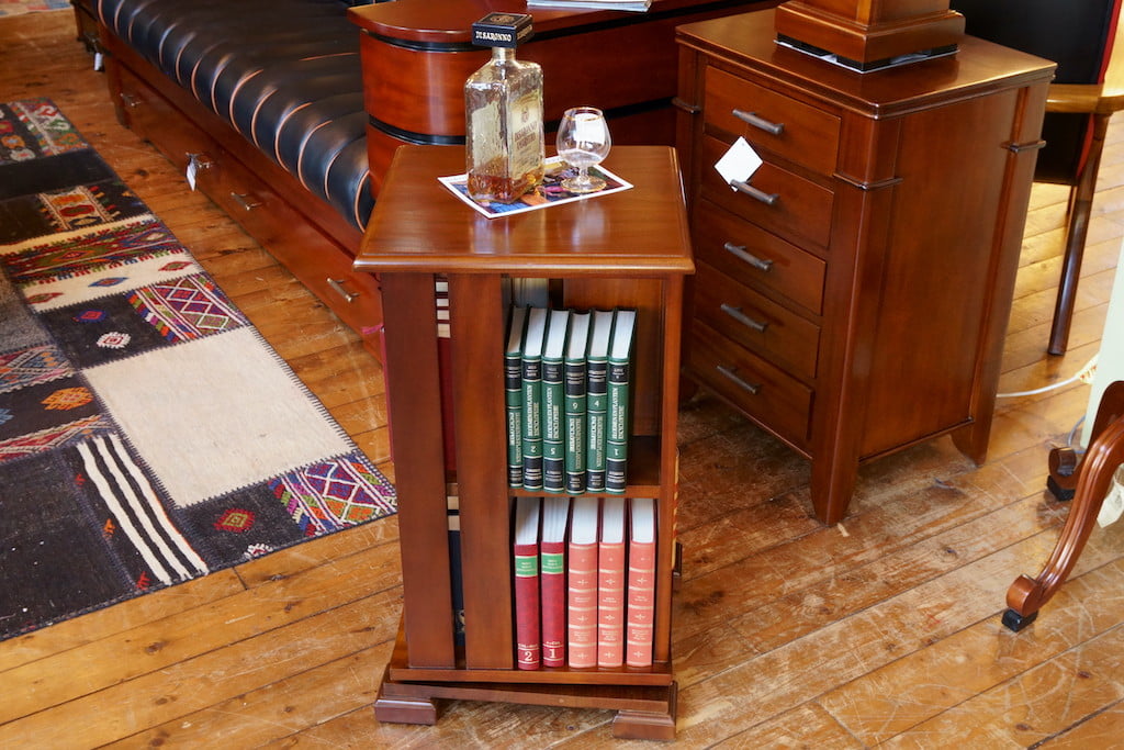 New to the collection: bookmill Ray! An unusual piece of furniture that is a cross between a side table and a small bookcase. On four sides of the mill you place the books. Because the mill turns on its base, made of mahogany, you can pick up a book from the shelf in an instant. Even while you are relaxing in your favorite armchair. Ultimate convenience!