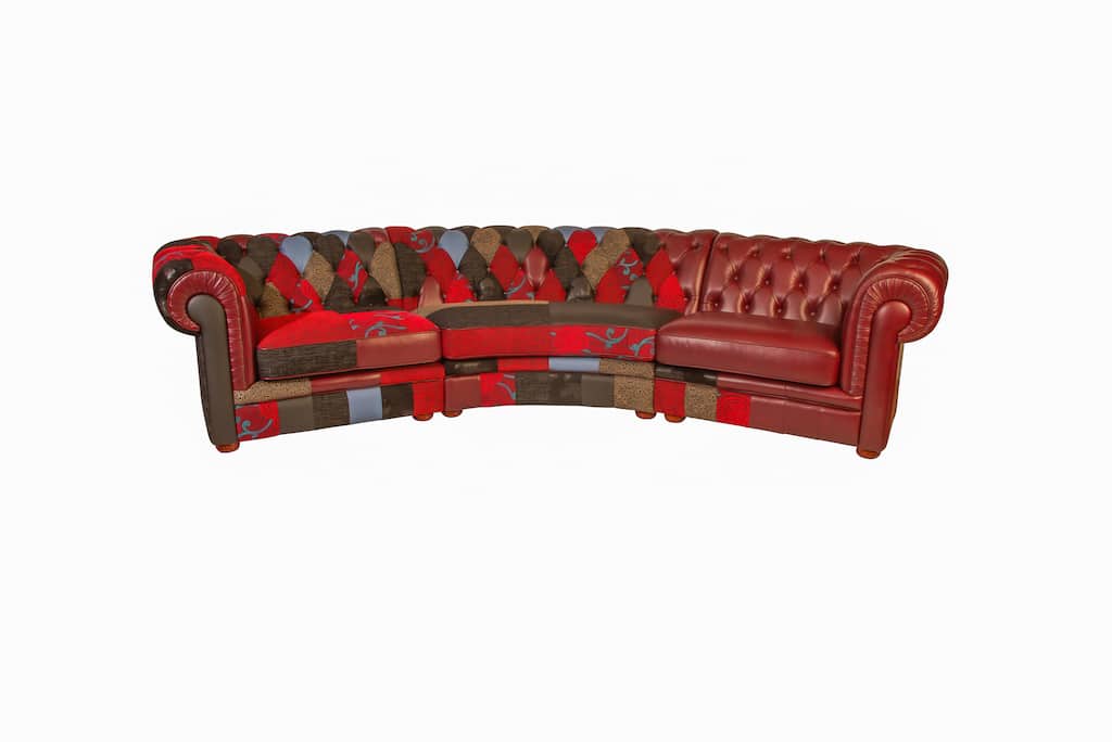 A bold combination of different fabrics mixed with red cowhide leather makes this a sofa you won’t see in everyone’s living room every day. It is possible to create your own composition with our extensive fabric and leather collection. Furthermore, the sofa can also be customized according to your wishes and sizes. Do you find that the cushions are too deep, or vice versa, we will adjust this for you! This also applies to the height of the seats or the hardness of the padding.