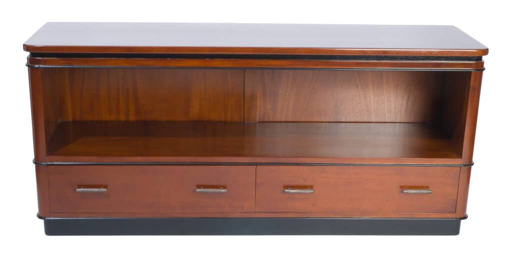 Beautiful stylized TV cabinet in Art Deco style. Executed in mahogany. Available in any size. Also adaptable to your wishes.